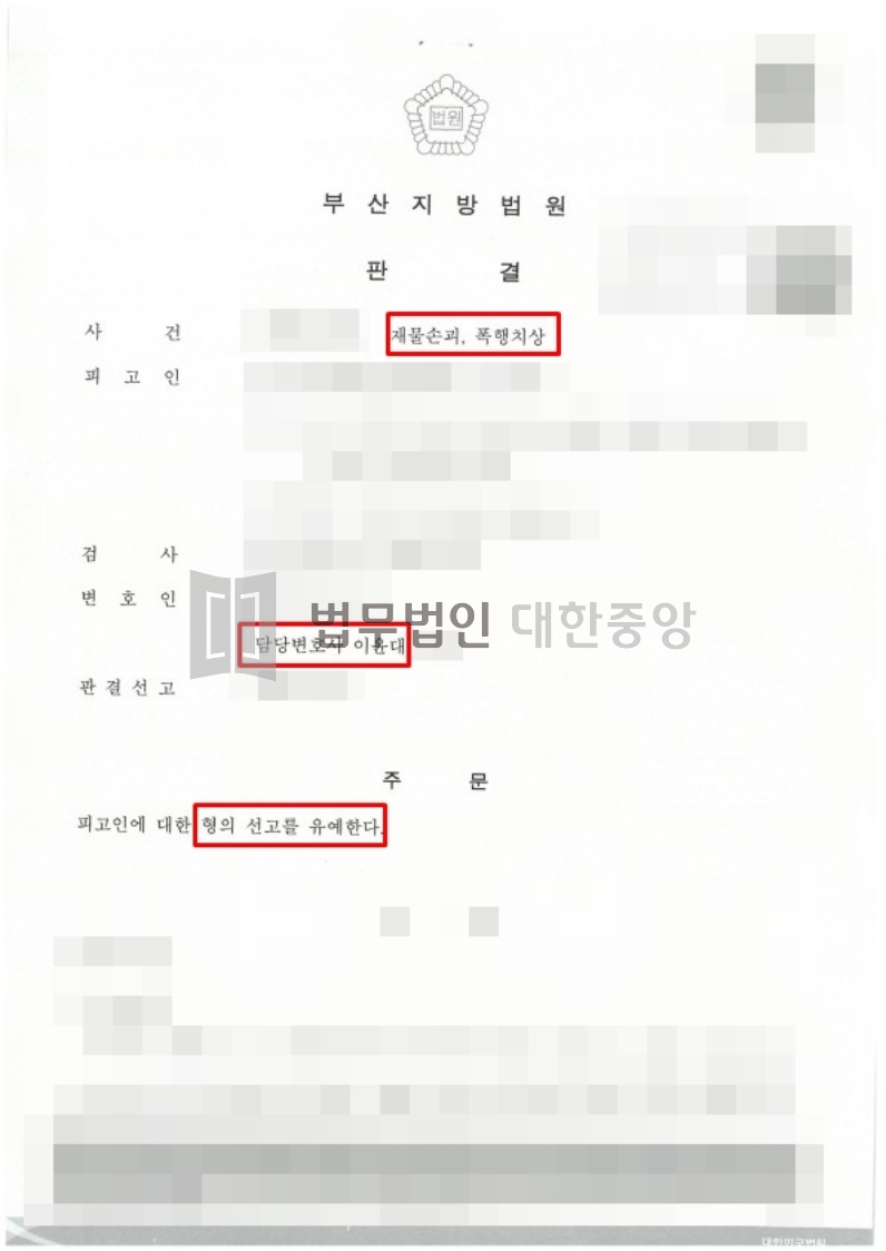 울산형사변호사 조력 사례 : 재물손괴, 폭행치상 선고유예 성공